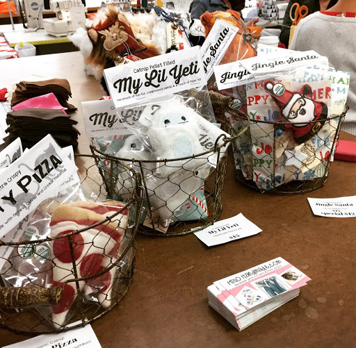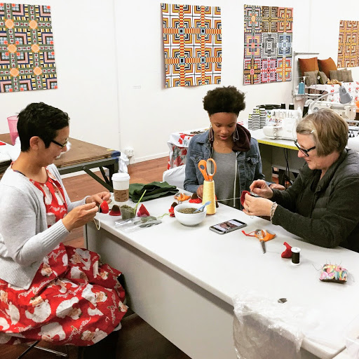 These little Japanese triangle bags are so simple and fun to make. They are a great way to wrap a gift and BE a gift all at once. What could be better and more eco-conscious than that? What I also love about these bags is that they are infinitely customizable (what sewing project isn't, really). The exterior of this bag can be embellished before construction with sashiko, fabric stamping, raw edge applique to name a few. And after construction, they can be adorned with big stitch around the top edge, tassels or even (gasp) pom-poms. Anyone who knows Hello Stitch knows we are quite smitten with those puffy little fluff balls - they look cute wherever they go! So - let's get down to the details!